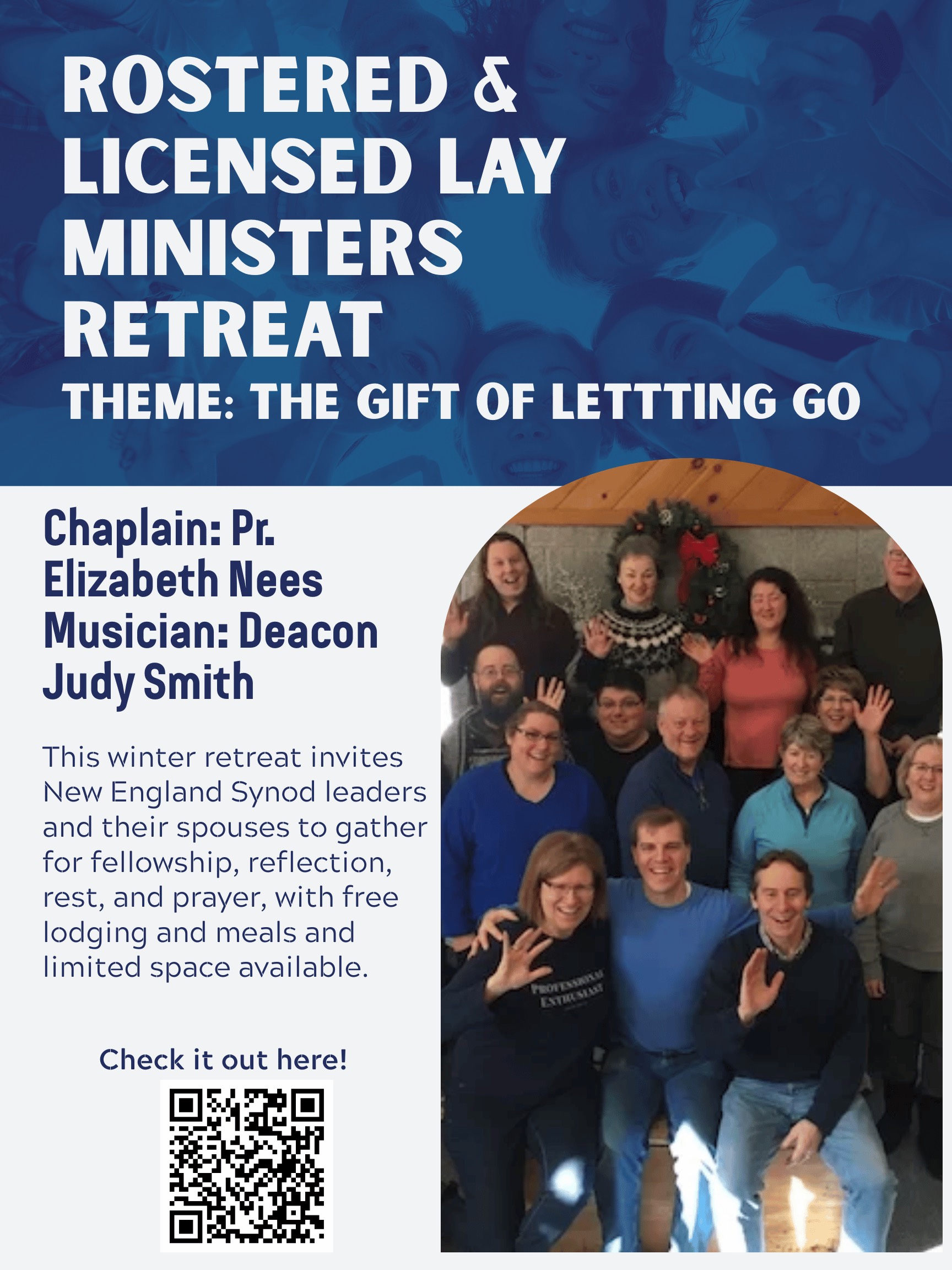 This winter retreat is an opportunity for the New England Synod’s pastors, deacon, Licensed Lay ministers -- and their spouses -- to come together in fellowship during the beautiful wintertime. Space is limited and is first come, first served.
